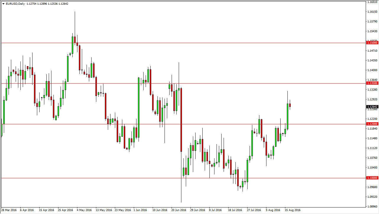 La coppia EUR/USD ha oscillato durante il corso della sessione di martedì, mostrando neutralità. Questo è un mercato che recentemente ha visto una buona spinta verso l’alto, e la rottura al di sopra del livello 1,12 è stata estremamente rialzista. Datogli sufficiente tempo, questa coppia probabilmente scenderà un po’, poiché si preparerà a costruirsi slancio per salire più in alto. Per questo penso che i mercati offriranno valore dopo questo movimento, ma dovremo vedere un qualche tipo di supporto dopo il pullback. Se rompessimo al di sotto del livello 1,12, probabilmente il mercato verrà ulteriormente svenduto. Il livello 1,1350 al di sopra è una barriera di resistenza, per questo sento che il mercato continuerà ad oscillare, ma probabilmente col tempo continueremo a vedere opportunità in entrambe le direzioni.