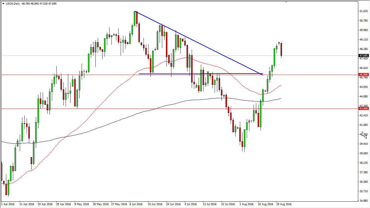 Il mercato del petrolio greggio WTI è sceso durante la giornata di lunedì, quando abbiamo visto un po’ di negatività. Essenzialmente questo rende la candela di venerdì uno “hanging man” e l’avere una candela così negativa suggerisce che scenderemo almeno alla maniglia 45$. Tuttavia, a questo punto penso che al livello 46$ ci sia del supporto che potrebbe far invertire il trend e costringermi ad acquistare di nuovo. Tuttavia, nel breve periodo sembra che il controllo lo abbiano i venditori.