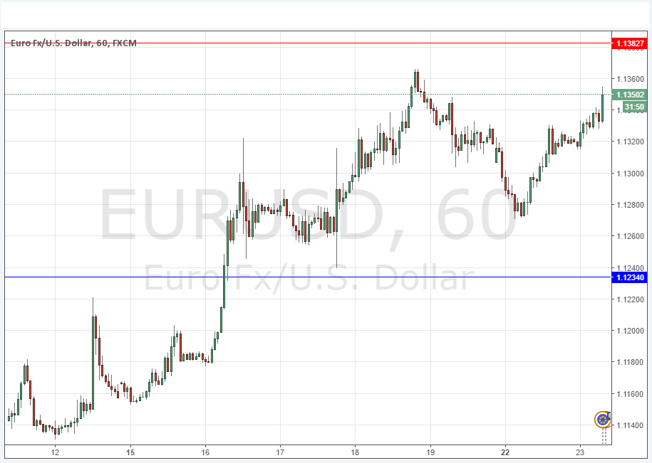 * Entrare long a seguito dell’inversione rialzista della price action sul grafico a 1h subito dopo il prossimo tocco di 1,1234.