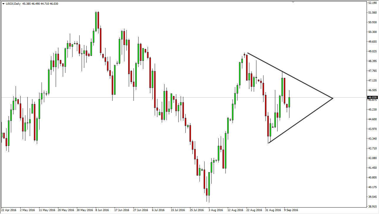 Il mercato del petrolio greggio WTI ha avuto una sessione estremamente volatile durante la giornata di lunedì, scendendo inizialmente giù alla regione 44,50$. Questo è un mercato che sembra molto volatile, e credo che stiamo tentando di stringere l’intervallo. Col tempo dovremo fare un qualche movimento impulsivo, ma a questo punto semplicemente non credo che il mercato sia pronto a farlo. Dopo tutto, ci stiamo iniziando a preoccupare della domanda e del valore del Dollaro, mentre i banchieri centrali continuano ad abusare delle aspettative sui tassi d’interesse. Probabilmente il mercato continuerà a muoversi in modo agitato nel breve periodo. Io sono dunque in cerca di una candela ribassista nel breve periodo per poter vendere in fretta.
