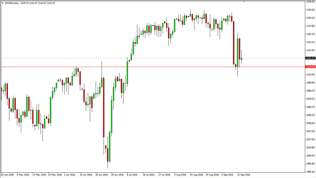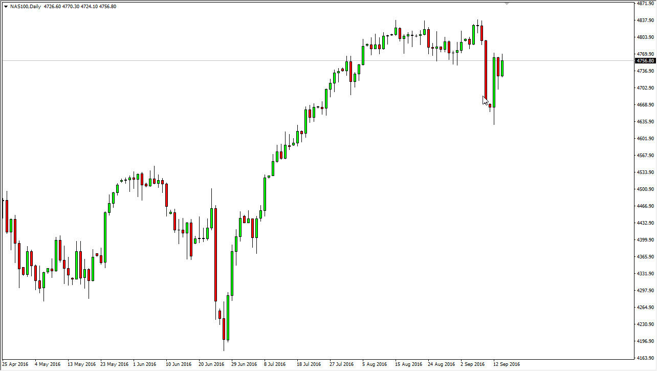 Lo S&P 500 ha registrato una sessione estremamente volatile mercoledì, oscillando fino a formare una shooting star. Tuttavia, penso che ci sia del significativo supporto alla maniglia 2120, come segnato sul grafico dalla linea orizzontale. Credo che questo mercato continuerà a trovare acquirenti in quest’area sottostante, e una volta che troveremo un po’ di supporto, non mi preoccuperò di acquistare. Francamente, credo che sebbene abbiamo visto parecchia volatilità di recente, la realtà è che il mercato è ancora molto rialzista. Per questo non sono realmente interessato a vendere al momento, e credo che anche al di sotto della maniglia 2120, ci sarà una massiccia quantità di supporto che si estende fino al livello 2100.