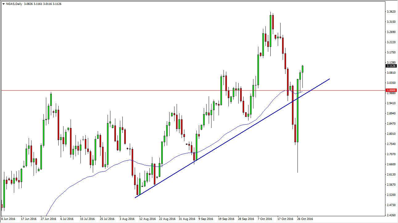 I mercati del gas naturale sono saliti durante le ultime sessioni, ma durante la sessione di venerdì inizialmente siamo scesi, solo per trovare nuovamente supporto nella media mobile esponenziale a 50 giorni e chiaramente nel livello 3$. Per via di questo movimento, e del martello formato, credo che gli acquirenti stanno iniziando a riprendere il controllo. C’è parecchio rumore in questo mercato, dunque dovrete riuscire a gestire questo tipo di volatilità, ma finché rimarremo oltre la linea di trend rialzista che ho segnato nel grafico, è difficile immaginare di vendere questo mercato. Dopo tutto, la candela formata mercoledì è stata assolutamente brutale e chiaramente positiva.