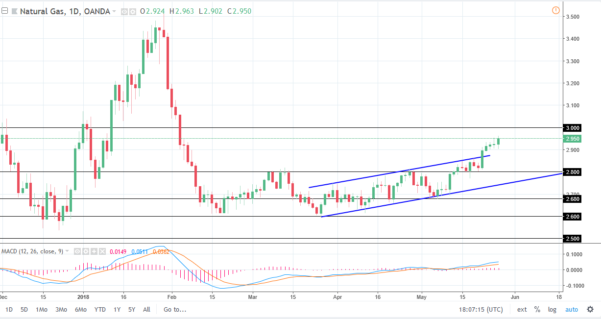 Lunedì i prezzi del gas naturale sono diminuiti inizialmente , ma sono tornati al livello di $ 2,90 per trovare un supporto sufficiente per tornare indietro. Ora che abbiamo fatto questo, è probabile che il mercato trovi resistenza al livello di 3,00 $, che è un numero psicologicamente importante. Se superiamo il limite superiore, la prossima grande barriera sarà al livello di 3,10 $. Sto cercando qualche tipo di segnale di esaurimento tra qui e là per iniziare a vendere, ma il mercato a breve termine certamente favorisce gli acquirenti. Penso che i trader a breve termine possano trarre vantaggio da piccoli ribassi come un'opportunità di acquisto nel mercato dei futures, ma, a lungo termine, ritengo che nel tempo avremo segni di esaurimento e ricominceremo a vendere gas. Aspetterò ogni giorno una candela ribassista nella resistenza prima di iniziare a vendere.