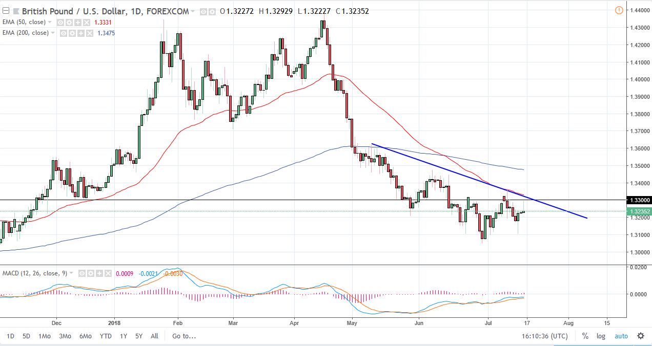 La sterlina britannica inizialmente si è rafforzata durante il giorno, ma ha trovato abbastanza rumore al livello di 1,33 per voltarsi e formare una candela dall'aspetto negativo. L’EMA a 50 è appena sopra quel livello, e potete vedere che ho una linea di tendenza al ribasso disegnata sul grafico. Penso che la sterlina britannica continuerà a suggerire negatività in generale, soprattutto perché abbiamo i problemi che escono dal teatro politico nel Regno Unito. Credo che il mercato dovrebbe continuare a vendere i rally, ma se dovessimo superare l'EMA a 50 giorni, penso che potremmo quindi andare verso il livello sopra di 1,35, un'area che dovrebbe vedere anche molta offerta. In effetti, siamo liberi di andare molto più in alto fino a superare il livello di 1,36. Penso che ci sia così tanto rumore in giro che sarà difficile restare aggrappati alla sterlina britannica a lungo termine.