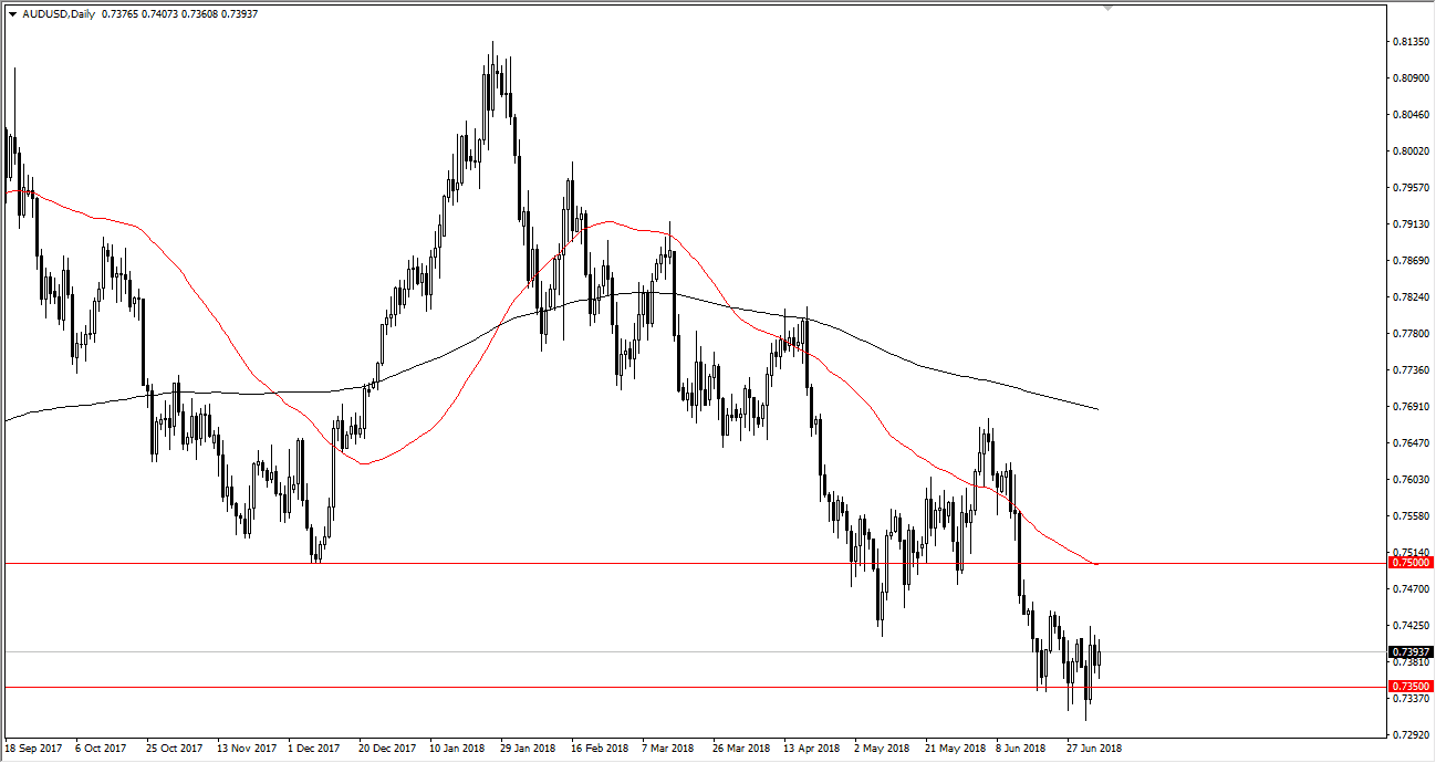 Il dollaro australiano è stato rumoroso durante la sessione di negoziazione di giovedì, visto che continuiamo a vedere il livello di 0,74 come un po’ di resistenza. Il mercato è certamente in ribasso e l'EMA a 50 giorni è sopra al livello di 0,75. Per questo motivo, penso che il mercato continuerà a vedere quella cifra tonda come resistenza non solo per il numero stesso, ma per la media mobile. Credo nella vendita di rally, finché non riusciremo a chiudere sopra quel livello sul grafico giornaliero. Tenete presente che questa coppia sarà molto sensibile alla propensione al rischio, e francamente sembra molto improbabile che i mercati siano disposti a spingersi troppo verso l'alto perché abbiamo così tanti avvenimenti a livello mondiale che fanno stare i trader ai margini.