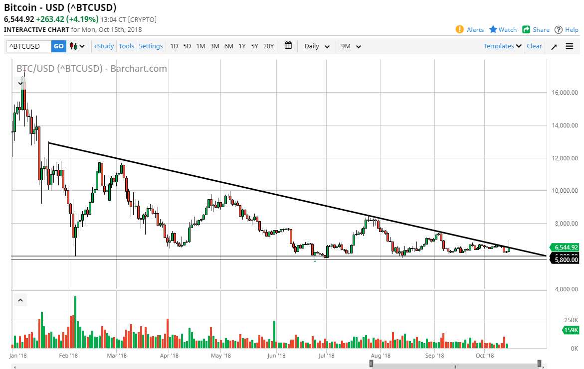 Bitcoin ha avuto una sessione interessante mercoledì, inizialmente con punte più alte e sopra la linea di tendenza al ribasso che abbiamo visto sul grafico per così tanto tempo. Si è trattato di un ottimo giro di eventi dal punto di vista tecnico ed è stato supportato da notizie fondamentali, nel senso che gli investimenti di Fidelity stanno mettendo insieme una piattaforma per il trading istituzionale di criptovalute. Questa è una delle cose che la gente piangeva cercando, Wall Street coinvolto nel mercato criptico delle valute, che è interessante considerando che va contro tutto ciò per cui è stata avviata la criptovaluta.