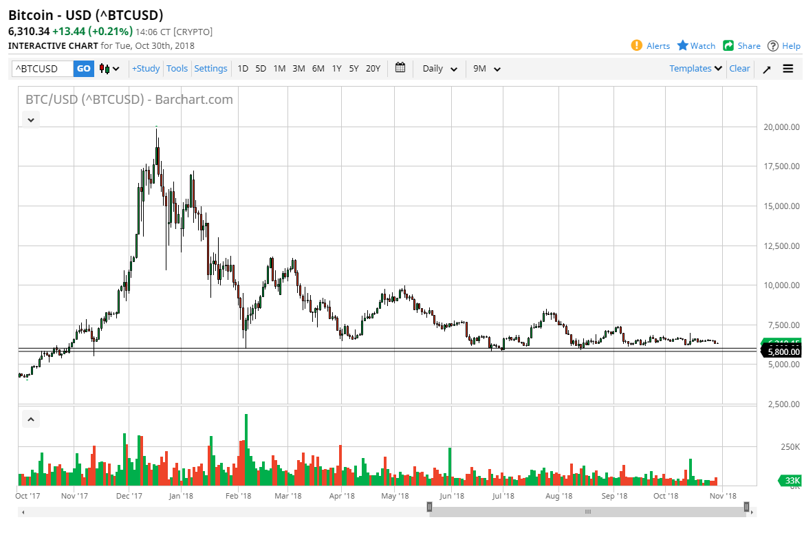I mercati dei bitcoin hanno fatto ancora poco durante la sessione di negoziazione di martedì, mentre continuiamo a ballare sopra il supporto principale. Il livello di 6000$ è l'inizio di un supporto piuttosto massiccio, quindi penso che a questo punto è probabile che continueremo semplicemente a rimbalzare in quest'area. Francamente, questo è un mercato che non ha catalizzatore per andare da nessuna parte e ora si parla della FCA nel Regno Unito che vieta i derivati della criptovaluta. Anche se ciò non influisce necessariamente sul commercio delle borse stesse, spingerà verso il basso molto interesse da parte dei commercianti al dettaglio, che commerciano in modo schiacciante i mercati CFD. In generale, spingerà verso il basso i volumi ancora più bassi, e mentre abbiamo sentito parlare di tutto il denaro istituzionale che vola in questo mercato, è ovvio che non ha portato molto volume con esso, il che mi rende un po 'sospettoso a questo punto.