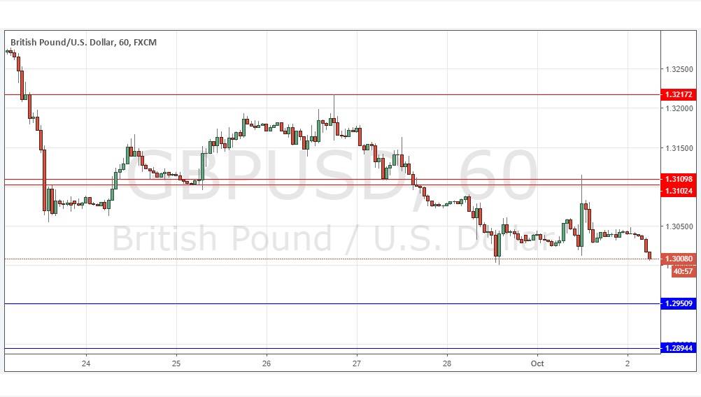 - Entrare short dopo un'inversione ribassista dell'azione dei prezzi sull'intervallo temporale a H1, immediatamente al successivo tocco di 1.3102 e 1.3110.