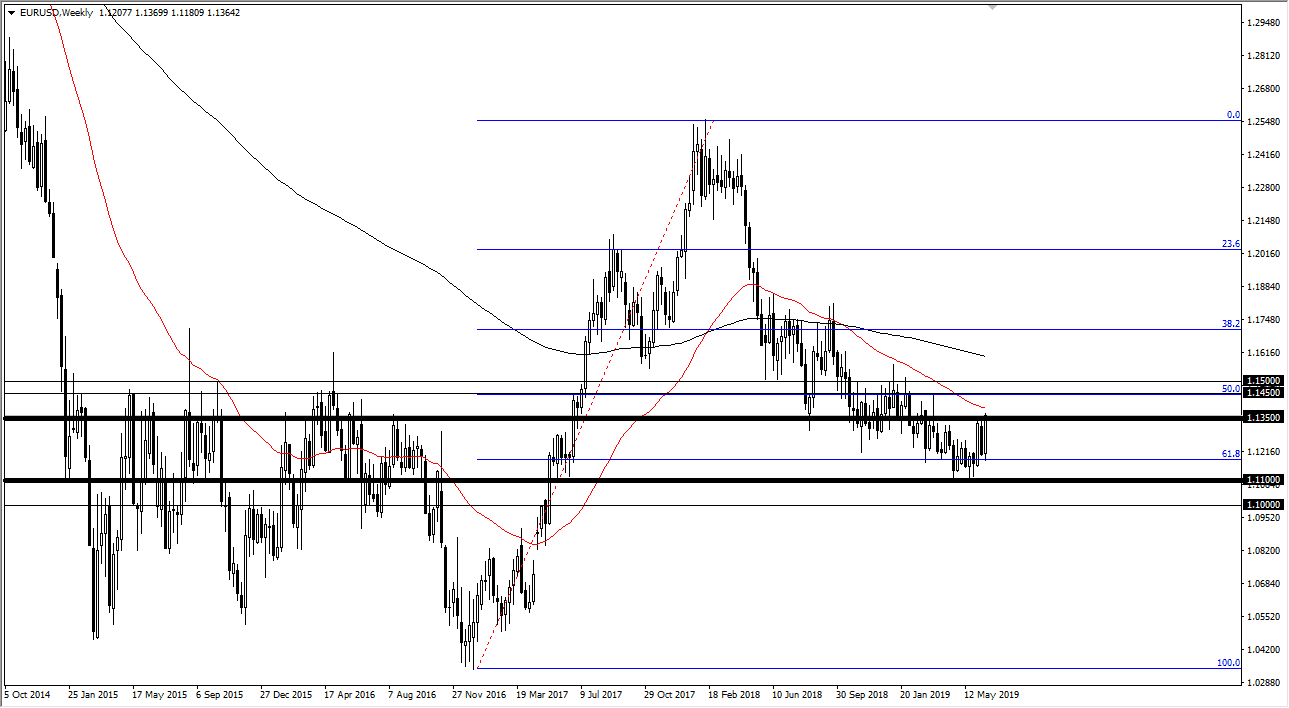 L'euro inizialmente si è ritirato durante la settimana, ma ha trovato abbastanza supporto al livello di ritracciamento di Fibonacci del 61,8% per rompere più in alto. Oltre a ciò, l'euro ha superato il livello di 1,1350, che ovviamente è un segno molto rialzista. Comunque sia, penso che ci sia molto rumore tra qui e 1.1450. Per questo motivo i pullback a breve termine continueranno probabilmente ad offrire buone opportunità di acquisto.
