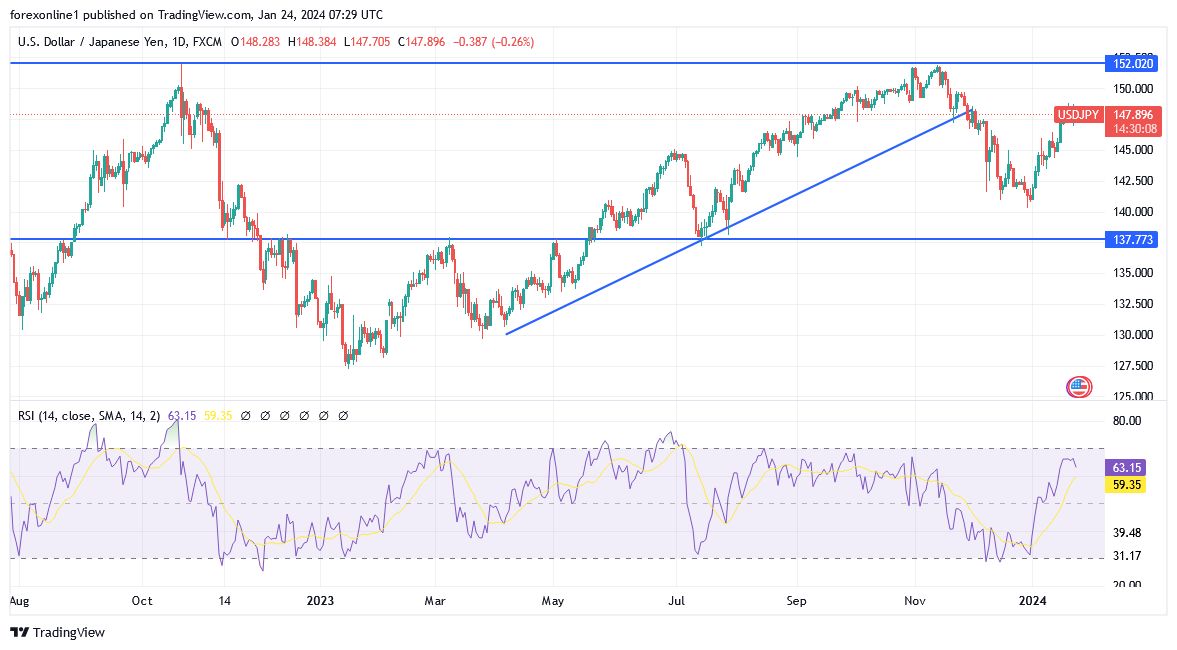 - Attualmente, USD/JPY sta scambiando intorno a 147,80 al momento della stesura.