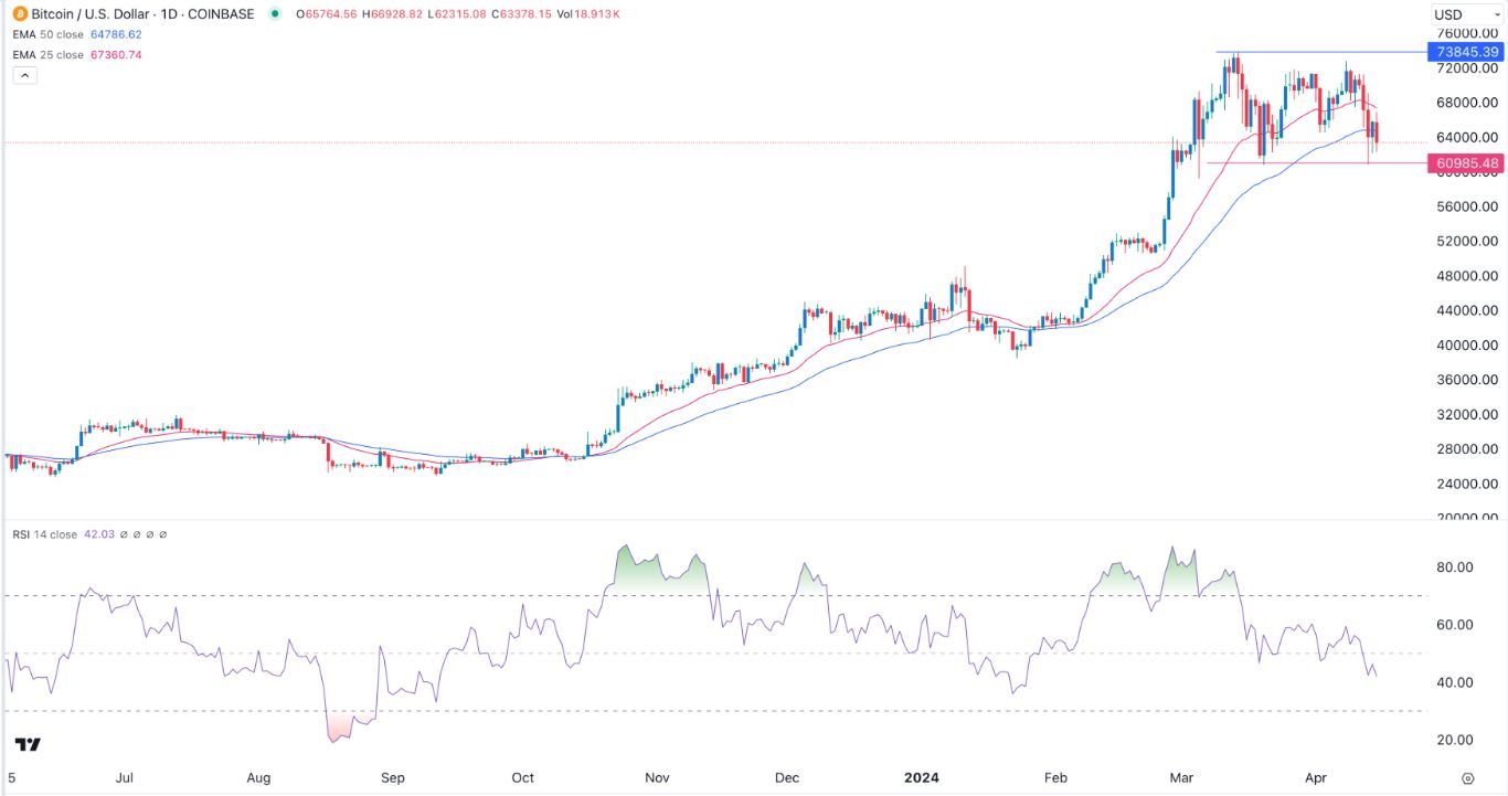 La coppia BTC/USD è rimasta sotto pressione mentre il rally del dollaro statunitense è continuato. La coppia è scivolata a 62.800 martedì mattina, cancellando parte dei guadagni fatti lunedì. Rimane molto al di sotto del massimo dell'anno a 73.845.