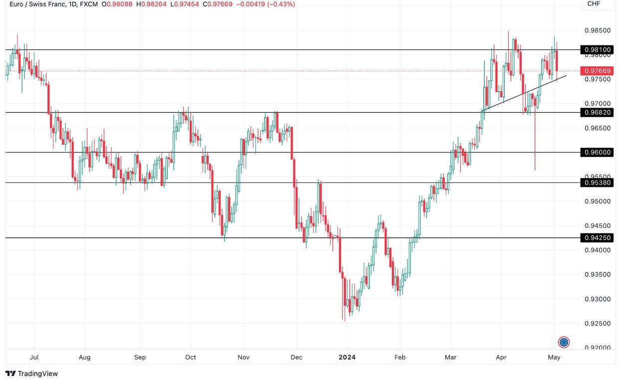 - Attuale livello di resistenza: 0.981 franchi per euro.